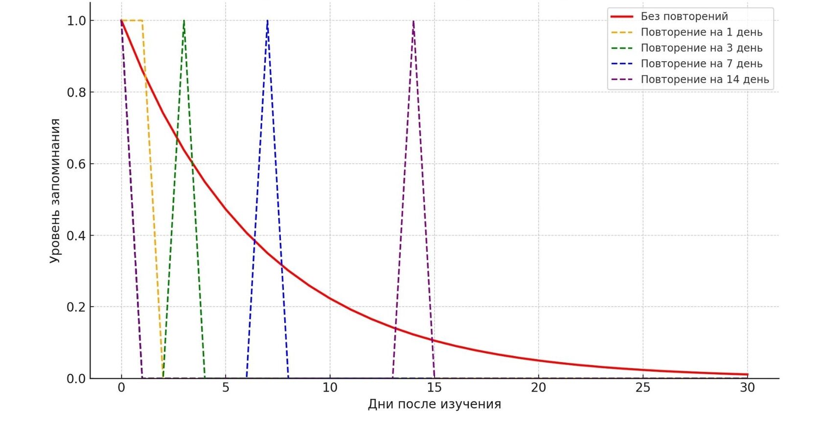 вопросы вызывает именно длина интервалов. А то, что мы всё постепенно забываем, к сожалению, факт. Это мы с вами и без всяких исследований знаем.